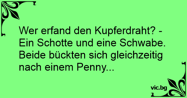 Wer erfand den Kupferdraht? - Ein Schotte und eine Schwabe. Beide bückten sich gleichzeitig nach einem Penny...