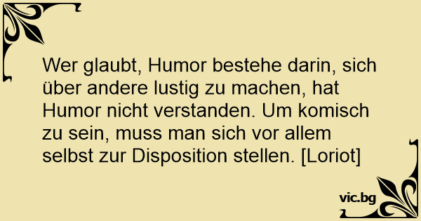 Wer glaubt, Humor bestehe darin, sich über andere lustig zu machen, hat Humor niсhт verstanden. Um komisch zu sein, muss man sich vor allem selbst zur Disposition stellen. [Loriot]