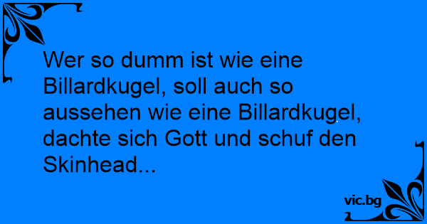 Wer so dumm ist wie eine Billardkugel, soll auch so aussehen wie eine Billardkugel, dachte sich Gott und schuf den Skinhead...