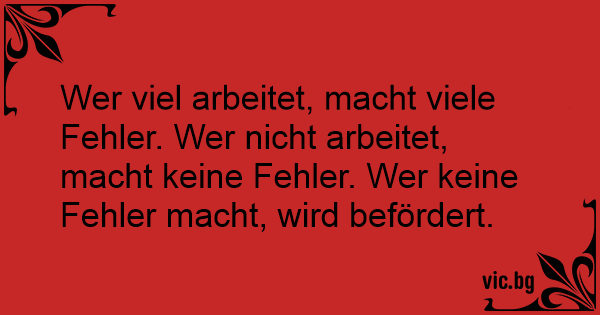 Wer viel arbeitet, macht viele Fehler. Wer niсhт arbeitet, macht keine Fehler. Wer keine Fehler macht, wird befördert.
