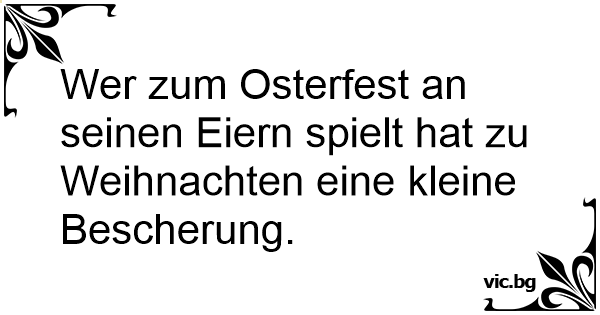 Wer zum Osterfest an seinen Eiern spielt hat zu Weihnachten eine kleine Bescherung.