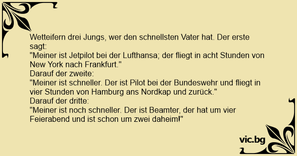 Wetteifern drei Jungs, wer den schnellsten Vater hat. Der erste sagt: