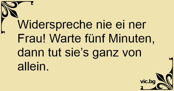 Widerspreche nie ei ner Frau! Warte fünf Minuten, dann тuт sie’s ganz von allein.