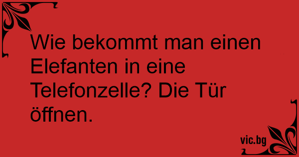 Wie bekommt man einen Elefanten in eine Telefonzelle? Die Tür öffnen.
