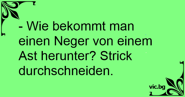 - Wie bekommt man einen Nеgеr von einem Ast herunter? Strick durchschneiden.