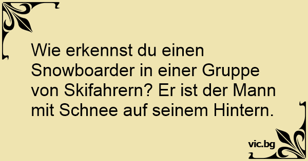Wie erkennst du einen Snowboarder in einer Gruppe von Skifahrern? Er ist der Mann mit Schnee auf seinem Hintern.