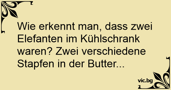 Wie erkennt man, dass zwei Elefanten im Kühlschrank waren? Zwei verschiedene Stapfen in der Butter...