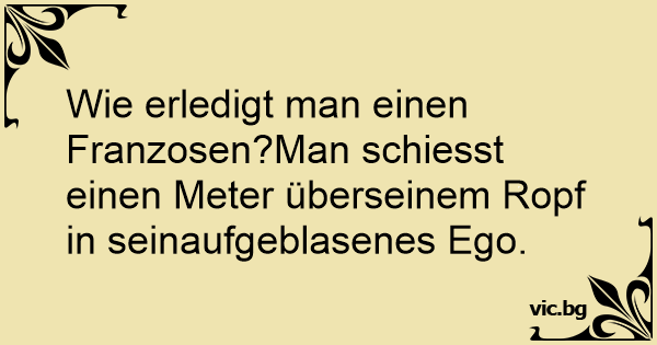 Wie erledigt man einen Franzosen?Man schiesst einen Meter überseinem Ropf in seinaufgeblasenes Ego.