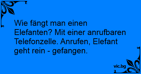 Wie fängt man einen Elefanten? Mit einer anrufbaren Telefonzelle. Anrufen, Elefant geht rein - gefangen.