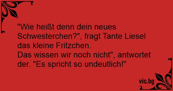"Wie heißt denn dein neues Schwesterchen?", fragt Tante Liesel das kleine Fritzchen.