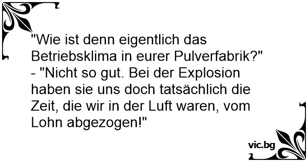 "Wie ist denn eigentlich das Betriebsklima in eurer Pulverfabrik?"