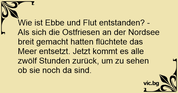 Wie ist Ebbe und Flut entstanden? - Als sich die Ostfriesen an der Nordsee breit gemacht hatten flüchtete das Meer entsetzt. Jetzt kommt es alle zwölf Stunden zurück, um zu sehen ob sie noch da sind.