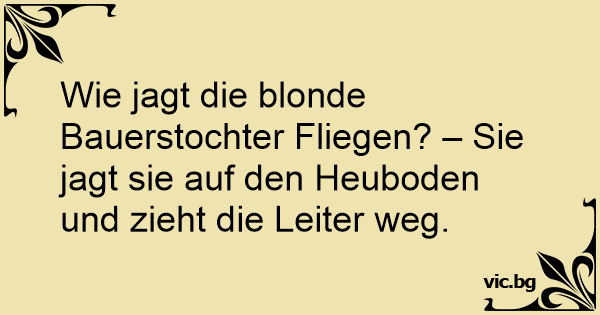 Wie jagt die blonde Bauerstochter Fliegen? – Sie jagt sie auf den Heuboden und zieht die Leiter weg.