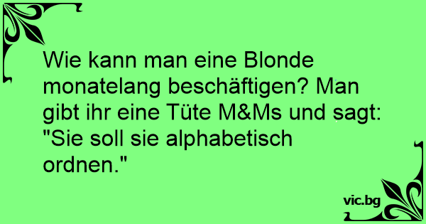Wie kann man eine Blonde monatelang beschäftigen? Man gibt ihr eine Tüte M&Ms und sagt: