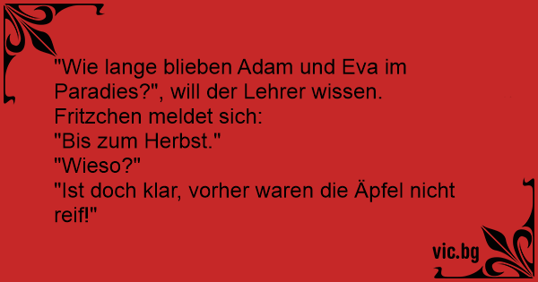 "Wie lange blieben Adam und Eva im Paradies?", will der Lehrer wissen.