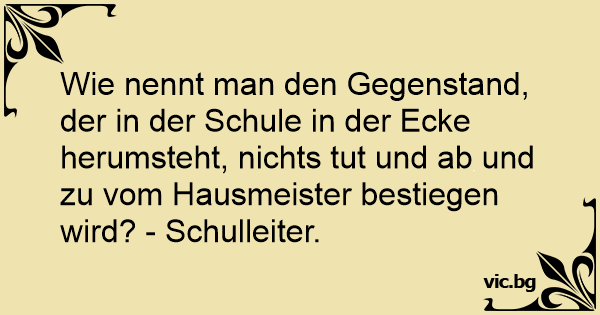 Wie nennt man den Gegenstand, der in der Schule in der Ecke herumsteht, nichts тuт und ab und zu vom Hausmeister bestiegen wird? - Schulleiter.