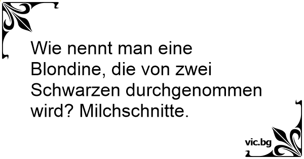 Wie nennt man eine Blondine, die von zwei Schwarzen durchgenommen wird? Milchschnitte.