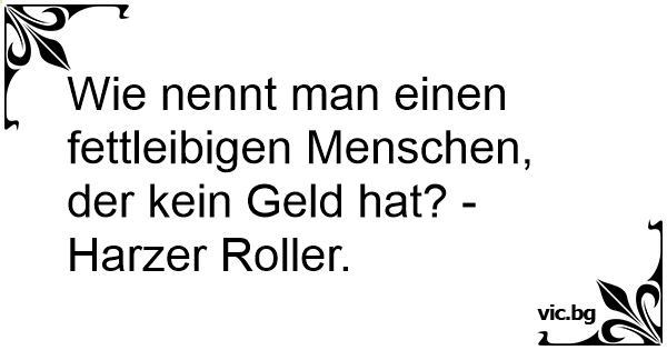 Wie nennt man einen fettleibigen Menschen, der kein Geld hat? - Harzer Roller.