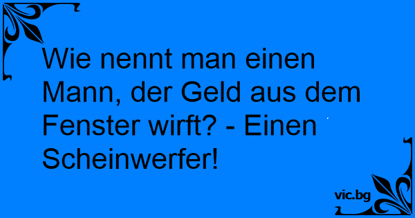 Wie nennt man einen Mann, der Geld aus dem Fenster wirft? - Einen Scheinwerfer!