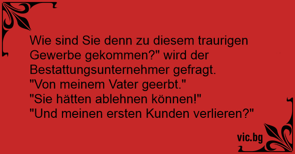Wie sind Sie denn zu diesem traurigen Gewerbe gekommen?" wird der Bestattungsunternehmer gefragt.