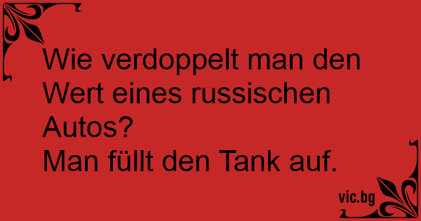 – Vet du hvordan man fordobler verdien i en Lada? – Fyller opp tanken.