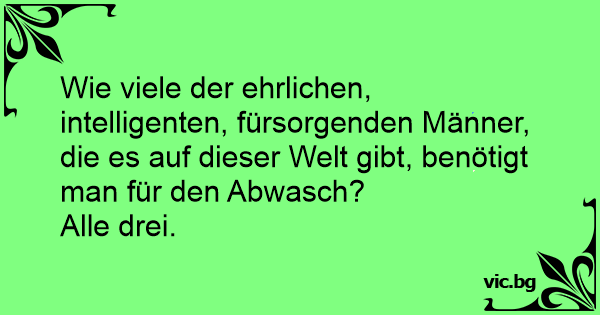 Wie viele der ehrlichen, intelligenten, fürsorgenden Männer, die es auf dieser Welt gibt, benötigt man für den Abwasch?