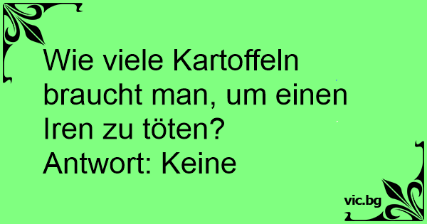 Wie viele Kartoffeln braucht man, um einen Iren zu töten?