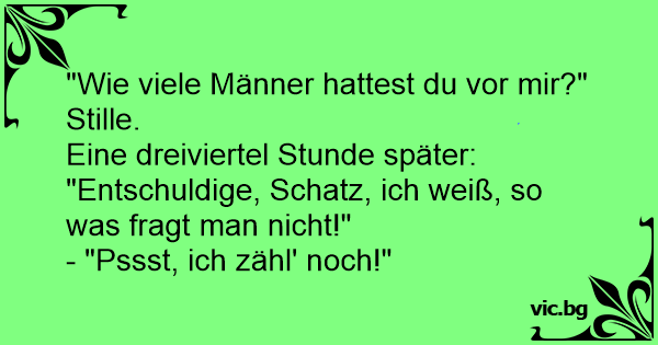 Er: "Wie viele Männer hast du eigentlich vor mir gehabt?" Nachdem sie beharrlich schweigt entschuldigt er sich: "Es tut mir leid, das war eine dumme Frage. Ich weiß ich habe kein Recht, bitte...