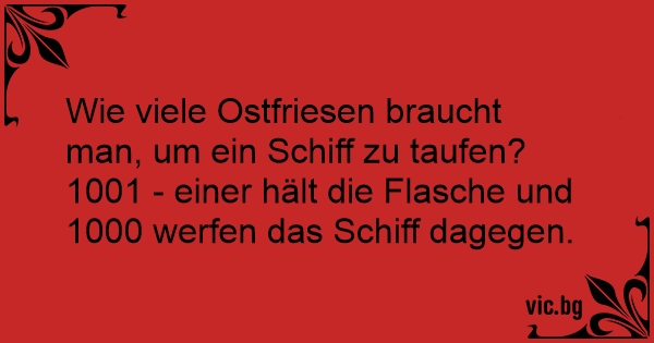 Wie viele Ostfriesen braucht man, um ein Schiff zu taufen? 1001 - einer hält die Flasche und 1000 werfen das Schiff dagegen.