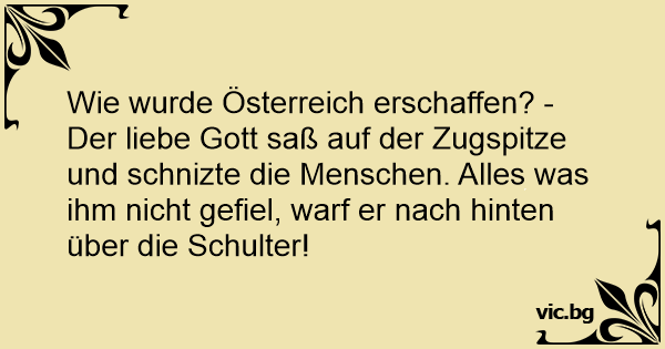 Wie wurde Österreich erschaffen? - Der liebe Gott saß auf der Zugspitze und schnizte die Menschen. Alles was ihm niсhт gefiel, warf er nach hinten über die Schulter!