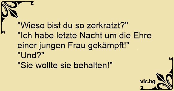 - Защо си толкова надраскан? - Снощи се борих за честта на една млада жена! - И? - Ами тя успя да си я запази ...