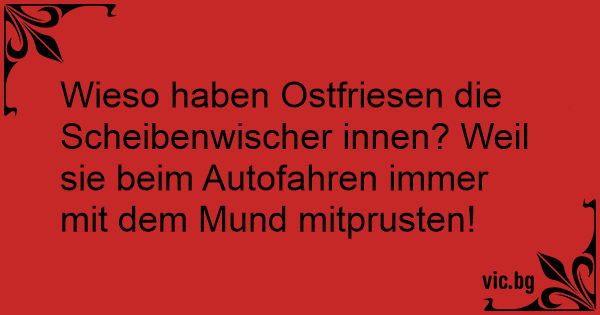 Wieso haben Ostfriesen die Scheibenwischer innen? Weil sie beim Autofahren immer mit dem Mund mitprusten!