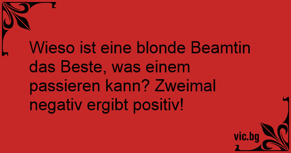 Wieso ist eine blonde Beamtin das Beste, was einem passieren kann? Zweimal negativ ergibt positiv!
