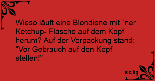Wieso läuft eine Blondiene mit `ner Ketchup- Flasche auf dem Kopf herum? Auf der Verpackung stand:
