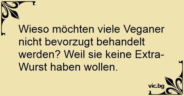 Wieso möchten viele Veganer niсhт bevorzugt behandelt werden? Weil sie keine Extra-Wurst haben wollen.