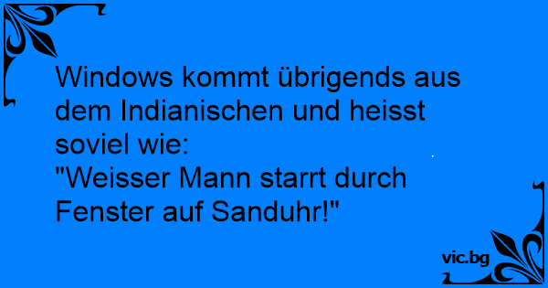 Windows kommt übrigends aus dem Indianischen und heisst soviel wie: