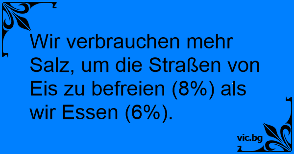 Wir verbrauchen mehr Salz, um die Straßen von Eis zu befreien (8%) als wir Essen (6%).
