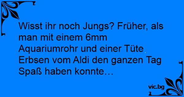 Wisst ihr noch Jungs? Früher, als man mit einem 6mm Aquariumrohr und einer Tüte Erbsen vom Aldi den ganzen Tag Spaß haben konnte…