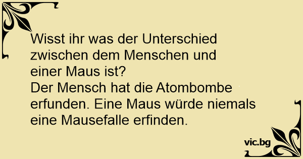 Der Mensch hat die Atombombe erfunden. Eine Maus würde niemals eine Mausefalle erfinden.