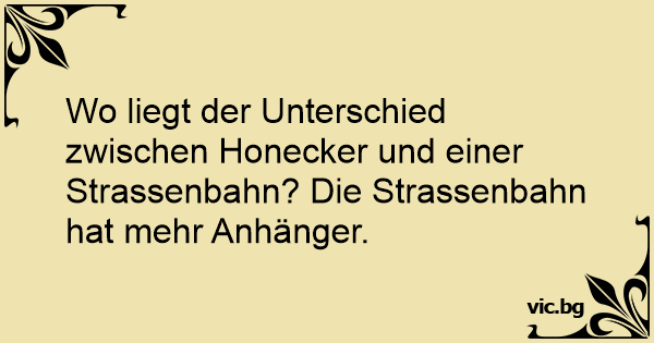 Wo liegt der Unterschied zwischen Honecker und einer Strassenbahn? Die Strassenbahn hat mehr Anhänger.