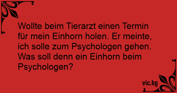 Wollte beim Tierarzt einen Termin für mein Einhorn holen. Er meinte, ich solle zum Psychologen gehen. Was soll denn ein Einhorn beim Psychologen?
