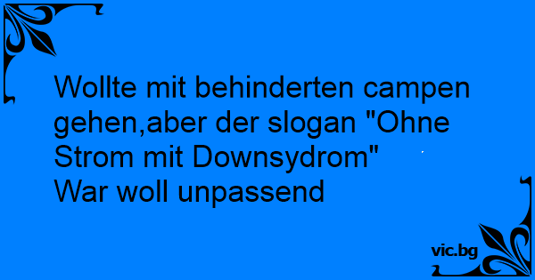 Wollte mit behinderten campen gehen,aber der slogan "Ohne Strom mit Downsydrom"