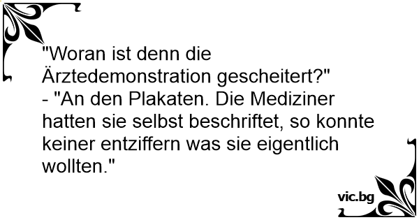 - "An den Plakaten. Die Mediziner hatten sie selbst beschriftet, so konnte keiner entziffern was sie eigentlich wollten."
