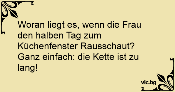 Woran liegt es, wenn die Frau den halben Tag zum Küchenfenster Rausschaut? Ganz einfach: die Kette ist zu lang!
