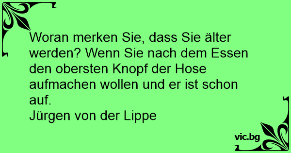Woran merken Sie, dass Sie älter werden? Wenn Sie nach dem Essen den obersten Knopf der Hose aufmachen wollen und er ist schon auf.