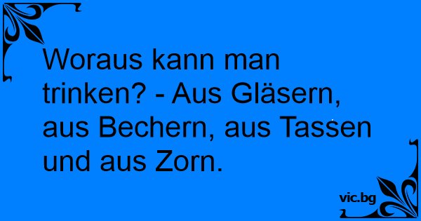 Woraus kann man trinken? - Aus Gläsern, aus Bechern, aus Tassen und aus Zorn.