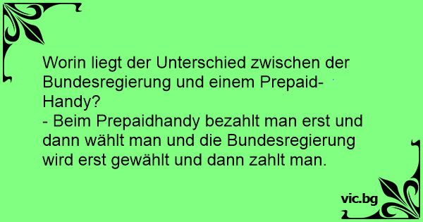 - Beim Prepaidhandy bezahlt man erst und dann wählt man und die Bundesregierung wird erst gewählt und dann zahlt man.