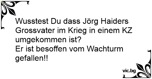 Snälla visa lite respekt. Inga skämt om koncentrationsläger tack, för min morfar dog i ett. - Han trillade ner från ett vakttorn och slog ihjäl sig.
