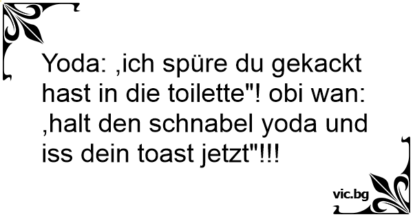 Yoda: ,ich spüre du gekackt hast in die toilette"! obi wan: ,halt den schnabel yoda und iss dein toast jetzt"!!!