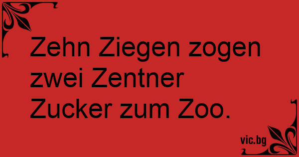 Zehn Ziegen zogen zwei Zentner Zucker zum Zoo.
